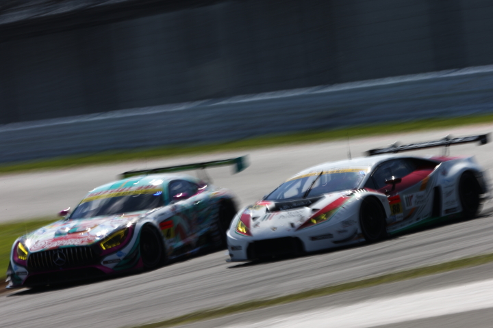 決勝レース: 片岡龍也(グッドスマイル初音ミクAMG) vs 平峰一貴(マネパランボルギーニGT3)