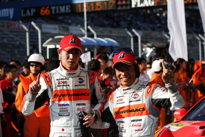 決勝レース: 小林崇志と高木真一(AUTOBACS RACING TEAM AGURI)