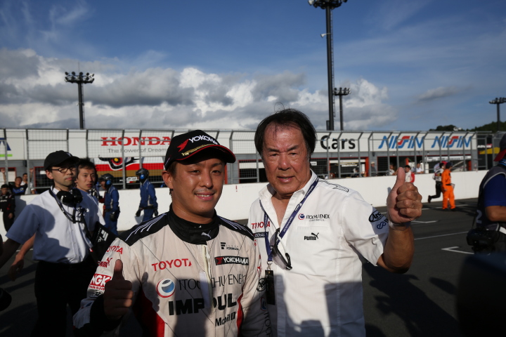 決勝レース: 優勝した関口雄飛と星野一義監督(ITOCHU ENEX TEAM IMPUL)