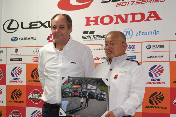 GTA記者会見: DTMのゲルハルト・ベルガーチェアマンと板東正明GTA代表取締役社長