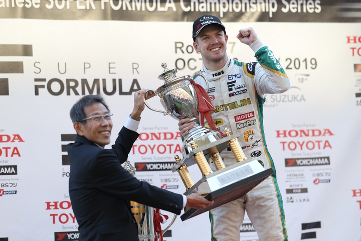 表彰式: ドライバーズチャンピオンを獲得したニック・キャシディ(VANTELIN TEAM TOM’S)