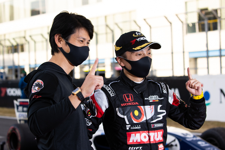 優勝した野尻智紀と中野信治監督(TEAM MUGEN)