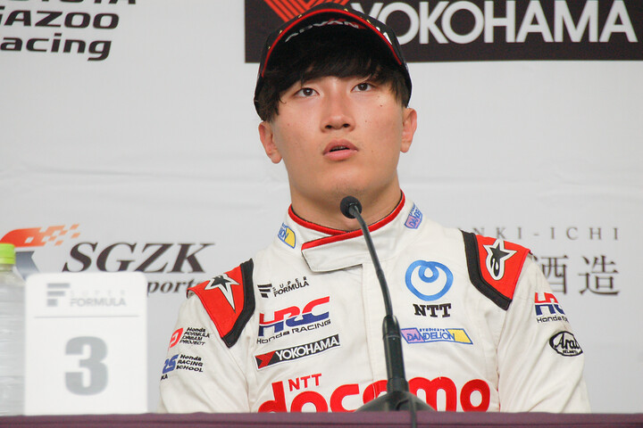 決勝記者会見: 3位の牧野任祐(DOCOMO TEAM DANDELION RACING)