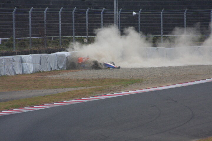 クラッシュする大川烈弥(アルビB-AutoダイテルED)