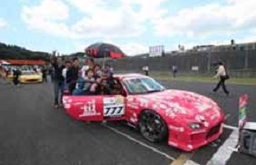 スタート直後にペースカーが出動するような大きなクラッシュもありましたが、ドリームエンジェルのRX-7は難を逃れ、順調に周回を重ね、スタートの遠藤選手から藤井選手へバトンタッチ。その後もリタイアするマシンを尻目に、トラブルもなく3時間のレースを走り切り、ラストスティントを任された遠藤選手が笑顔のチェッカーをくぐりました。